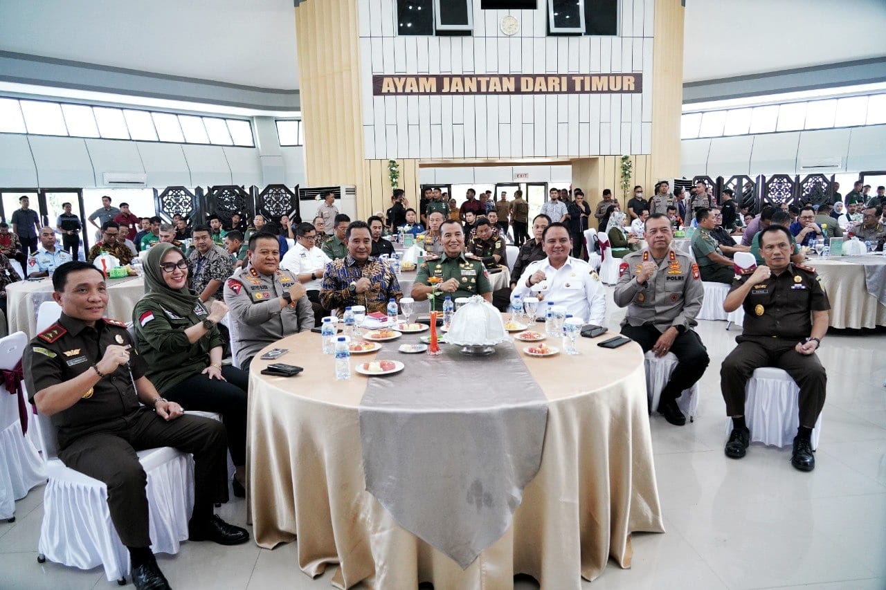 “Maksud pertemuan kita kali ini, disamping untuk bersilaturahmi juga untuk perkenalan kepada para pejabat baru Forkopimda, sehingga pada intinya kita ingin seluruh pejabat, seluruh masyarakat dan seluruh komponen bangsa yang berada di wilayah di tiga Provinsi semuanya bisa bersinergi, satu suara, satu langkah dan satu tindakan dalam rangka melaksanakan tugas kita, khususnya tugas menghadapi Pemilu 2024”, Tuturnya.