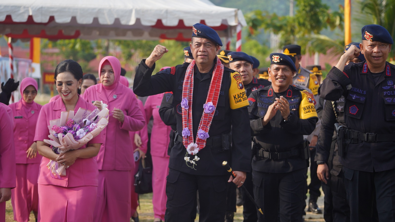 Terlihat dalam kesempatan tersebut para pejabat utama, personel yang dilibatkan, ketua Bhayangkari dan para pengurusnya juga turut hadir memeriahkan semarak Hut Brimob yang ke 78.