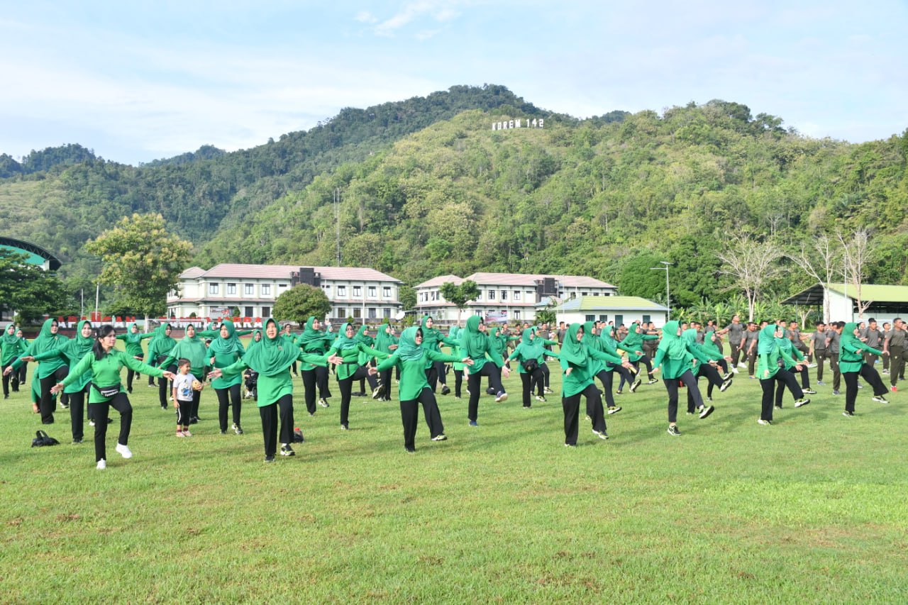“Olahraga bersama ini menjadi momen yang sangat penting untuk meningkatkan keharmonisan di antara anggota keluarga besar Korem 142/Tatag,” Ucap Danrem 142/Tatag