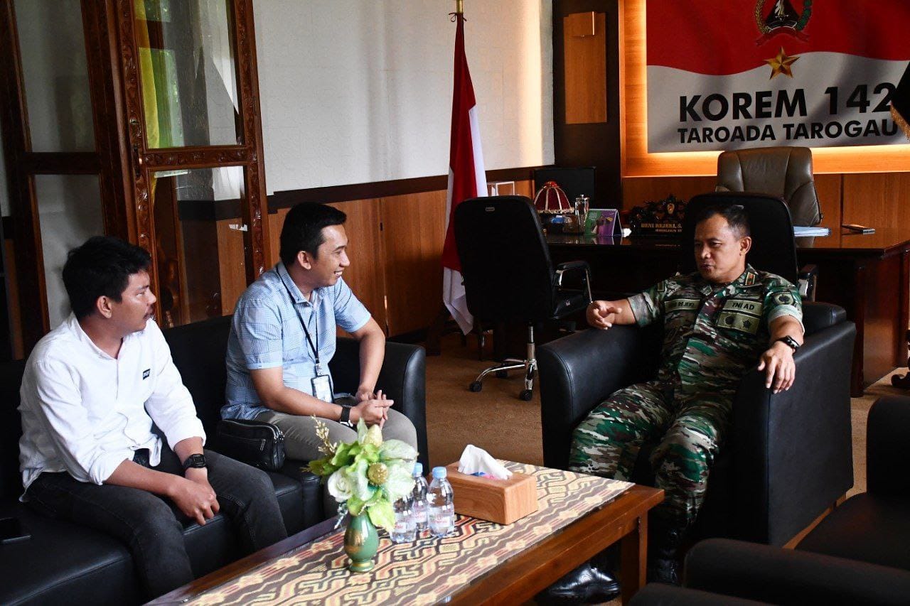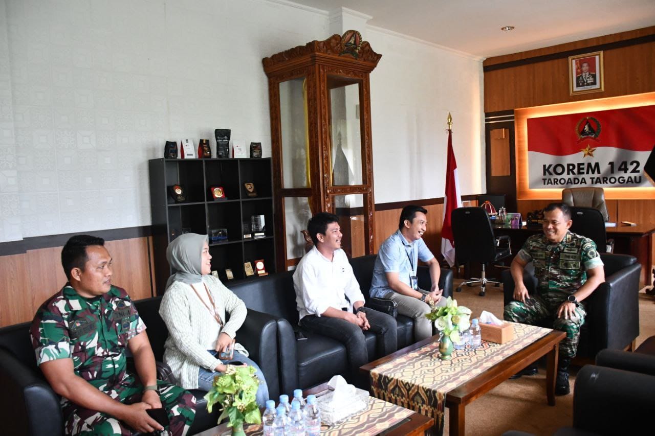 Kehadiran Pimpinan Wilayah Bank Mandiri Mamuju Yusuf Jhon Litha di dampingi stafnya disambut langsung oleh Danrem 142/Tatag Brigjen TNI Deni Rejeki, S.E., M.Si di ruang kerja