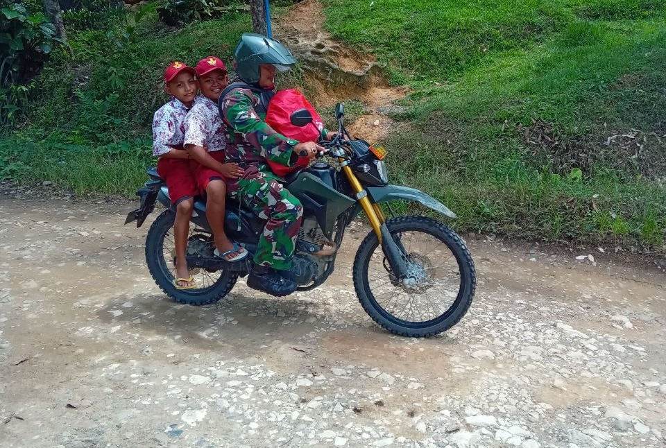 Dengan jarak tempuh sekitar 6 kilometer, melibatkan medan yang cukup menantang dengan mendaki dan menuruni tiga bukit, perjalanan ini bukanlah hal yang mudah bagi anak-anak tersebut. Serda Jimmy, yang secara kebetulan melihat mereka, langsung bertindak tanpa berpikir panjang, memberikan bantuan tumpangan untuk membantu mereka sampai ke tujuan dengan lebih nyaman.