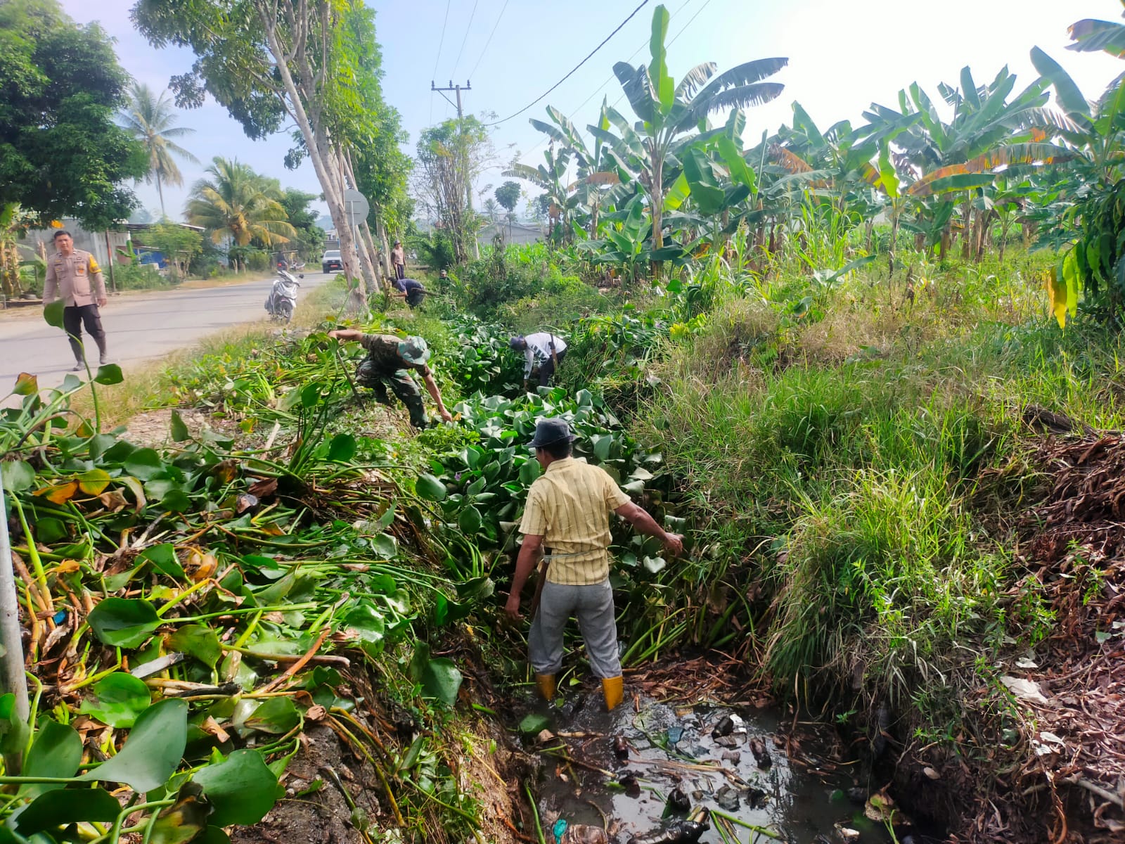 Babinsa Koramil 1418-04/Budong-Budong dan Masyarakat Gotong Royong Bersihkan Saluran Air
