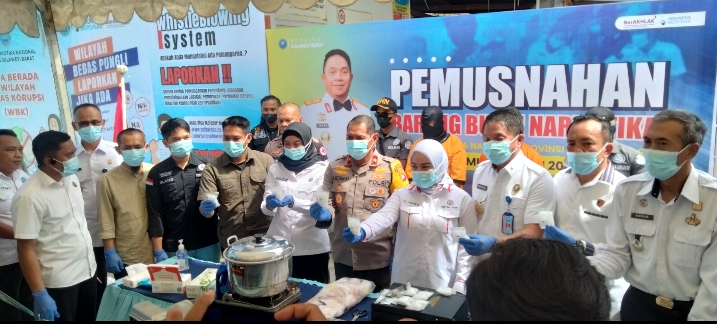 selain itu kata dia, juga merupakan rangkaian proses penyidikan, dimana barang bukti yang sudah mendapatkan status barang sitaan narkotika dari kejaksaan, dan wajib segera dimusnahkan sesuai dengan Perintah Undang Undang Nomor 35 Tahun 2009 Tentang Narkotika.