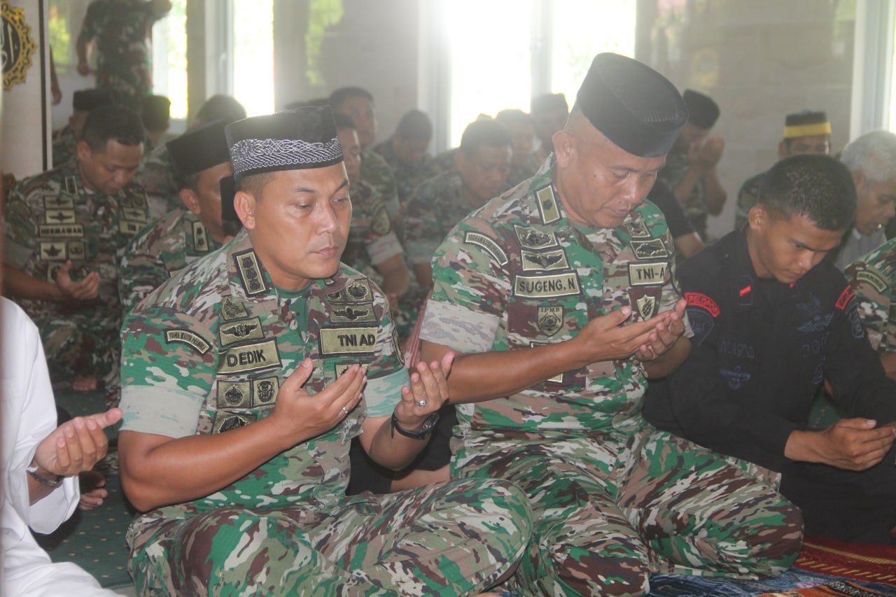 Kegiatan doa bersama dihadiri Kasrem 142/Tatag Kolonel Arh Dedik Ermanto, S.I.P., M.T, Para Kasi Kasrem 142/Tatag, para Perwira, Bintara, Tamtama dan PNS Korem 142/Tatag serta personel Brimob Polda Sulbar