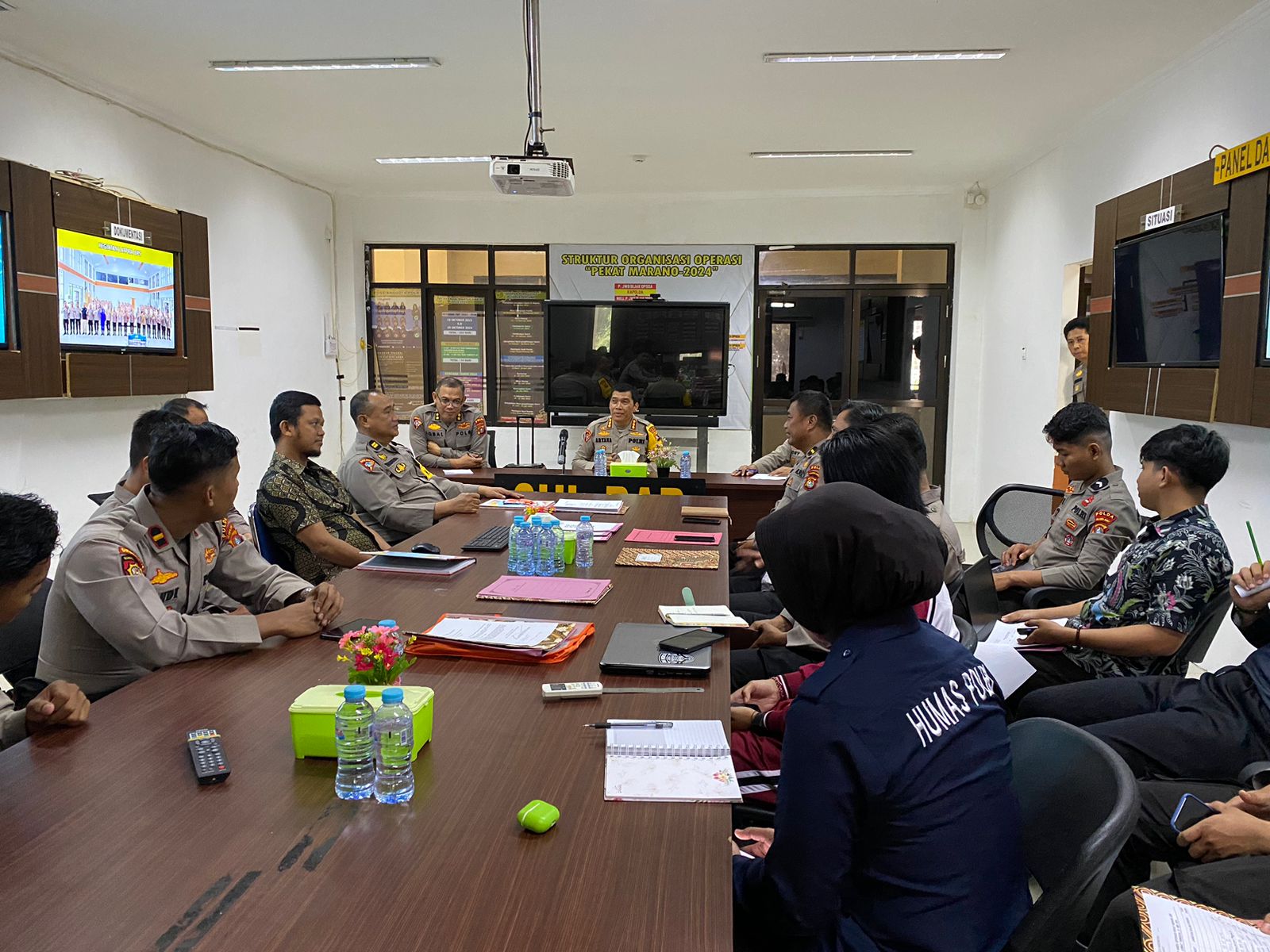 Mamuju, 77News.id – Memimpin rapat analisa dan evaluasi (Anev) operasi pekat Marano 2024, Karo Ops Kombes Pol I Nyoman Artana menegaskan kepada seluruh personel yang terlibat untuk menyapu bersih target operasi khususnya 7 sasaran pokok operasi dengan memaksimalkan peran masing-masing satgas lewat sinergitas dan kolaborasi yang kuat, Jumat (31/5/24) di ruang rapat Biro Ops.