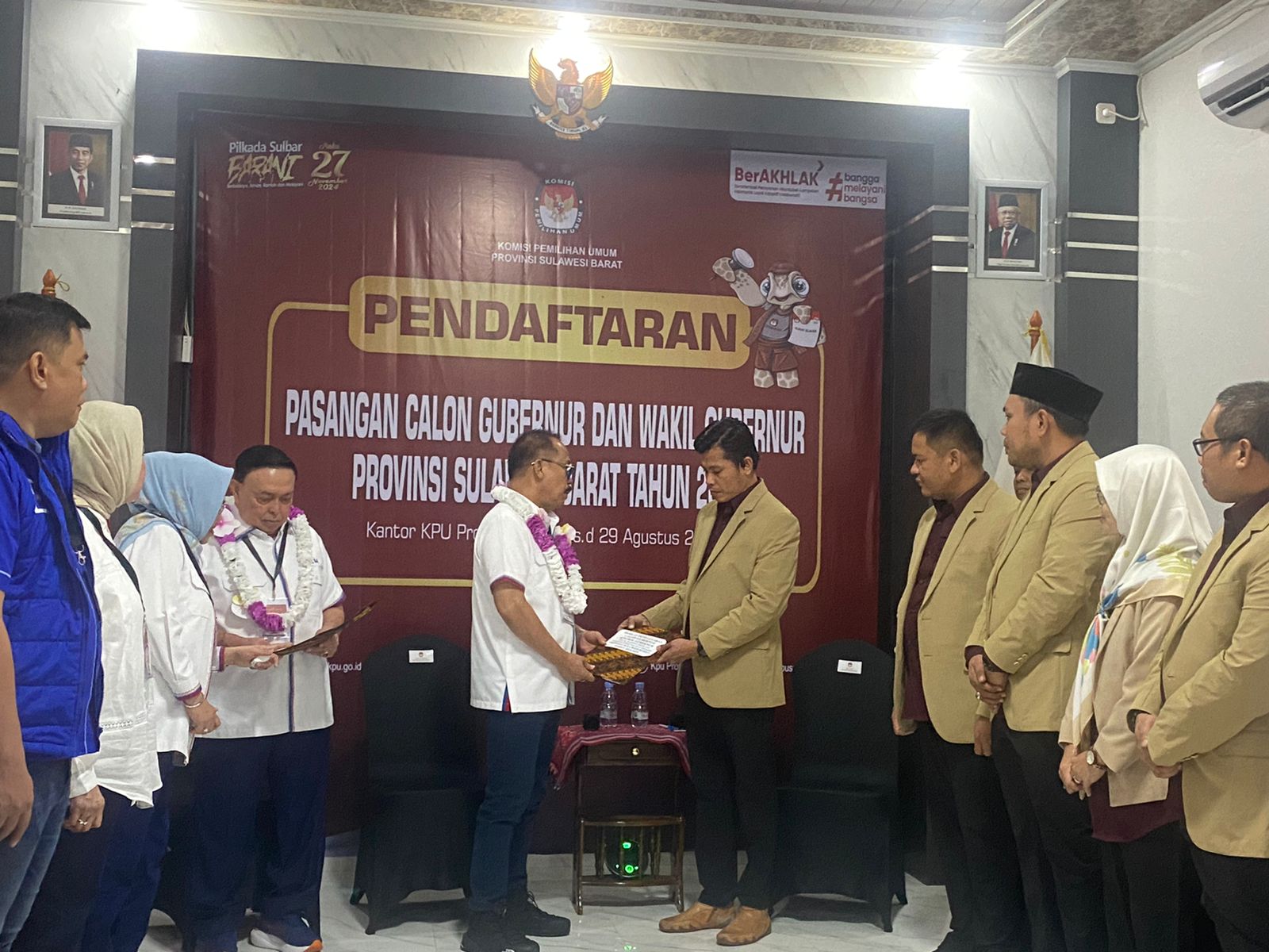 Sesampainya di lokasi, SDK langsung memasuki ruangan KPU untuk memulai proses pendaftaran. Salim S. Mengga mengikuti di belakang, dan keduanya kemudian melanjutkan menuju ruang utama kantor KPU Sulbar untuk menyelesaikan tahapan administrasi pendaftaran mereka.