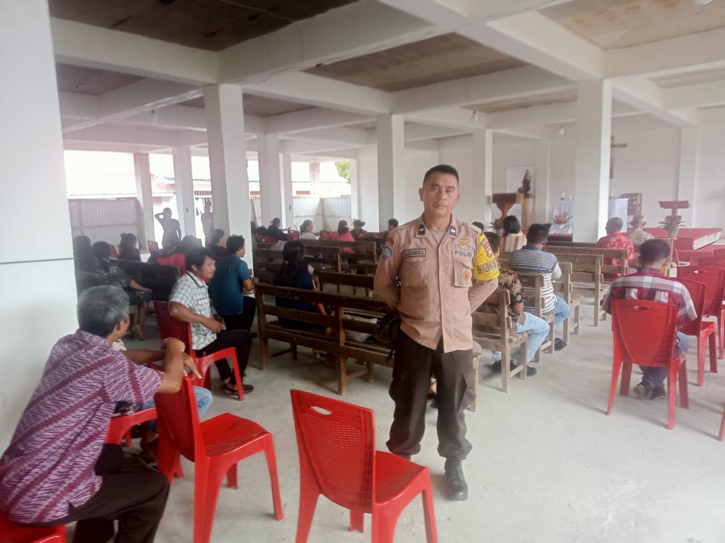 Dalam Kegiatan Tersebut Personil polres Mamuju Tengah bersama Babinkantimas Desa Benggaulu Polsek Karossa Melakukan Monitoring dan Pengamanan Ke Gereja yang melaksanakan ibadah Minggu diantaranya Gereja Katolik Stasi Santo Petrus Rasul Desa Karossa