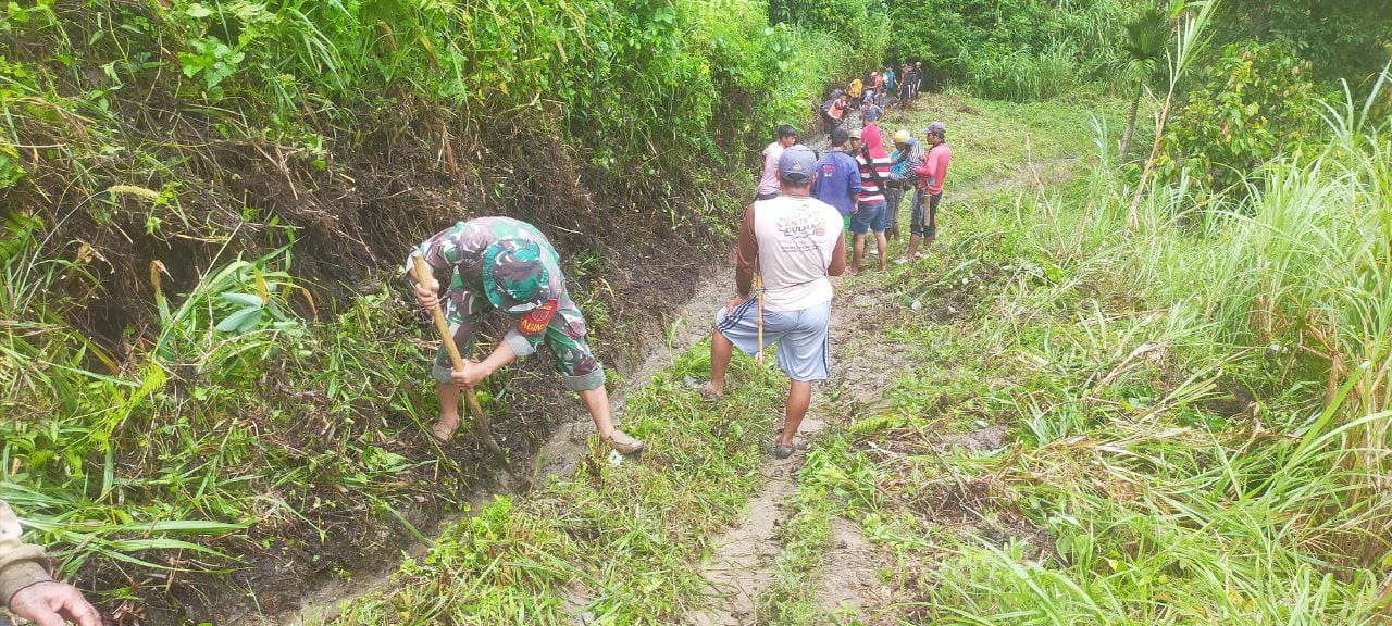 Babinsa Koramil 1418-05/Kalumpang, Serda Roy, bersama warga desa setempat melaksanakan karya bakti pembersihan saluran air sepanjang 200 meter. Kegiatan ini bertujuan untuk mengantisipasi terjadinya bencana banjir dan munculnya wabah penyakit yang sering terjadi di musim hujan. Minggu (6/10/2024).