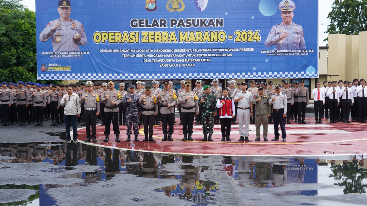Polda Sulbar, 77News.id – Empat belas hari kedepan, Kepolisian daerah Sulawesi barat akan menggelar operasi Zebra Marano 2024. Kegiatan tersebut ditandai dengan pelaksanaan gelar pasukan dengan melibatkan stakeholder sebagai bentuk kesiapan dan komitmen bersama untuk mewujudkan kamseltibcarlantas lantas, Jumat (11/10/24) di lapangan Tribrata Mapolda.