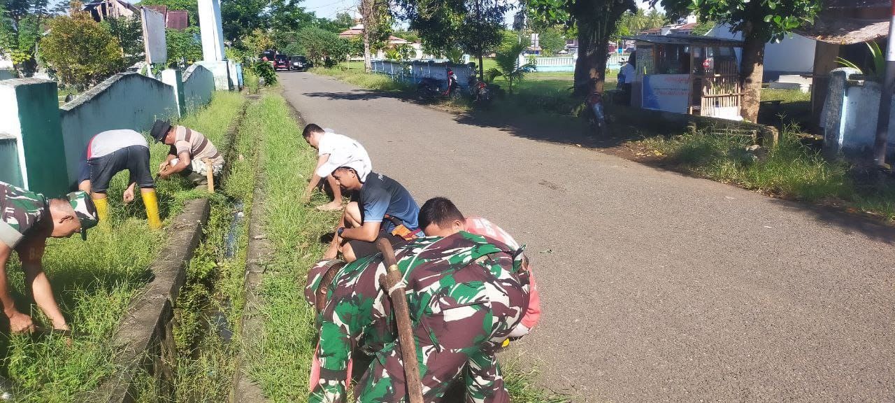 Karya bakti ini melibatkan personel TNI dan masyarakat setempat, yang bahu-membahu membersihkan lumpur, sampah plastik, dan material lainnya yang menyumbat saluran air. Partisipasi aktif warga menjadi bukti nyata kebersamaan dalam menjaga kebersihan dan kenyamanan desa mereka.