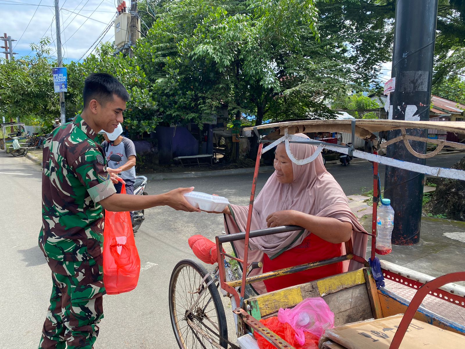 Personel Korem 142/Tatag turun langsung ke jalan-jalan di Kota Mamuju, membagikan nasi kotak kepada para tukang becak, tukang parkir, ojek, dan pemulung. Para penerima bantuan menyambut dengan penuh rasa syukur, karena bantuan tersebut meringankan beban mereka, terutama di tengah situasi ekonomi yang cukup sulit.