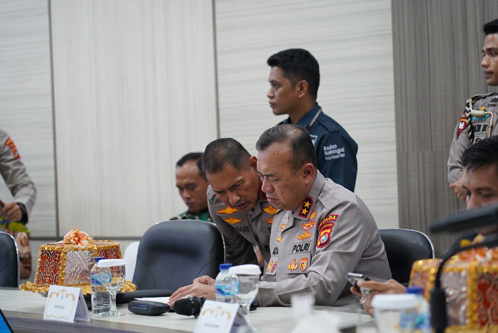 Polda Sulbar, 77news.id – Kapolda Sulbar Irjen Pol Adang Ginanjar didampingi Wakapolda, Karo Ops, Dir Intelkam, Dir Reskrimum, Dir Reskrimsus dan Dir Binmas Polda Sulbar menghadiri rapat koordinasi (Rakor) forkopimda, Jumat (16/5/25).