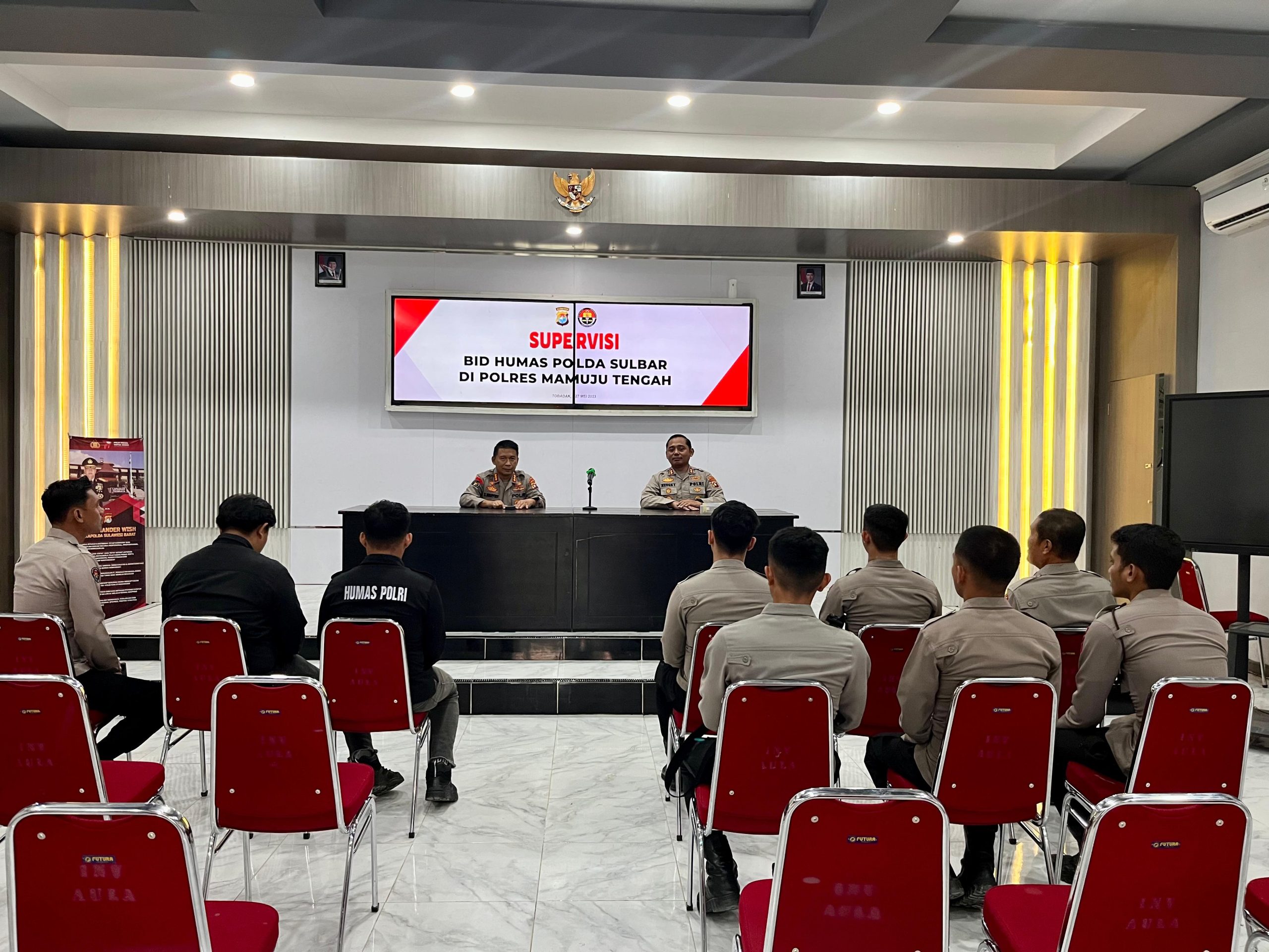 Kabid Humas Polda Sulbar, Kombes Pol Slamet Wahyudi, didampingi Kapolres Mateng, AKBP Hengky, memberikan arahan dan bimbingan kepada seluruh personel Humas Polres Mateng.