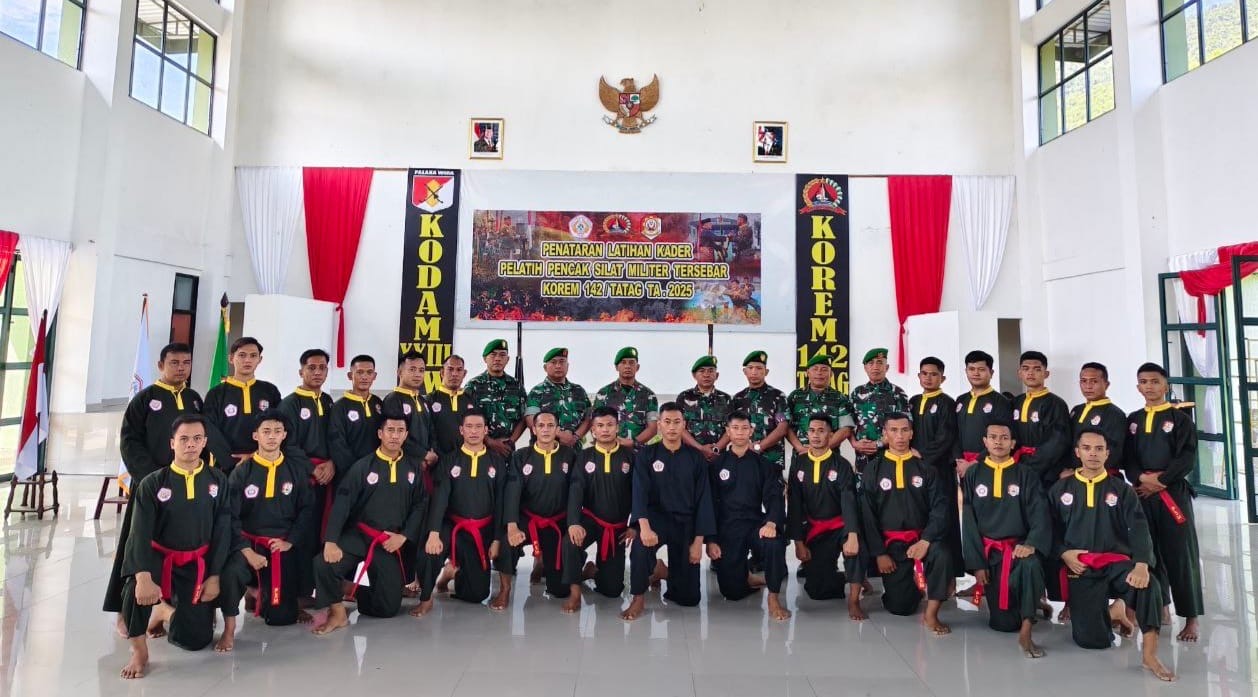 Mamuju,77news.id_Komandan Korem 142/Tatag Brigjen TNI Hartono, S.I.P., M.M., resmi menutup kegiatan Penataran Latihan Kader Pelatih Pencak Silat Militer (PSM) tersebar Korem 142/Tatag Tahun Anggaran 2025 yang berlangsung di Aula Andi Depu Makorem 142/Tatag, Mamuju, Provinsi Sulawesi Barat, Senin (15/9/2025).