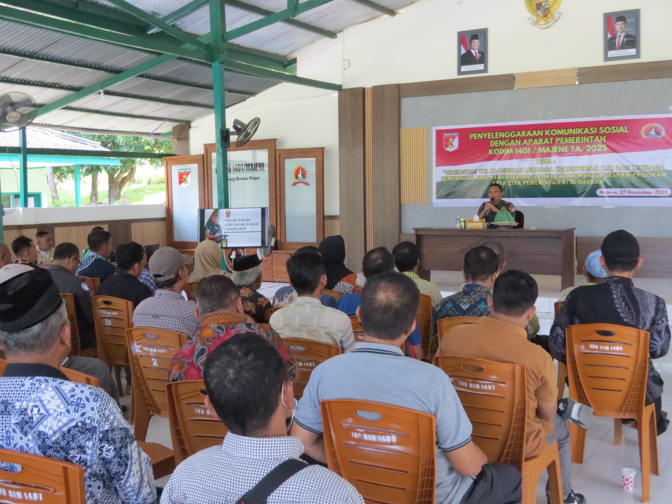 Majene, 77news.id – Dalam rangka mendukung percepatan Program Asta Cita pemerintah, Kodim 1401/Majene menggelar kegiatan Komunikasi Sosial (Komsos) dengan aparat pemerintah tahun 2025 di Aula Kodim 1401/Majene, Kelurahan Lembang, Kecamatan Banggae Timur, Kabupaten Majene, Kamis (27/11/2025).