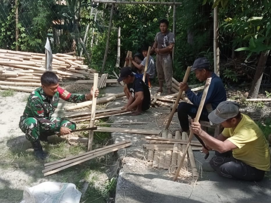 Dekat dengan Rakyat, Babinsa Kodim 1401/Majene Gotong Royong Bangun Pagar Bambu