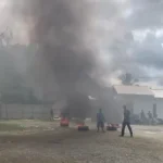 Hak yang telah Di janjikan Tak Kunjung Di selesaikan, Warga Salule’bo Bakar ban Di depan Kantor Direksi Bendungan Budong-Budong.